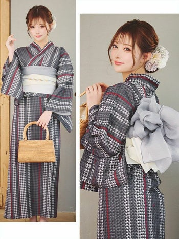 4. SALE【浴衣】ツイード地風 千鳥柄 ゆかた3点SET [浴衣+平帯or作り帯+下駄]