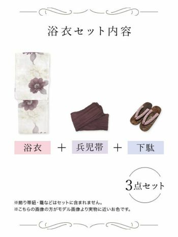 3. 【浴衣】白地 牡丹柄 ゆかた3点SET [浴衣+兵児帯+下駄]
