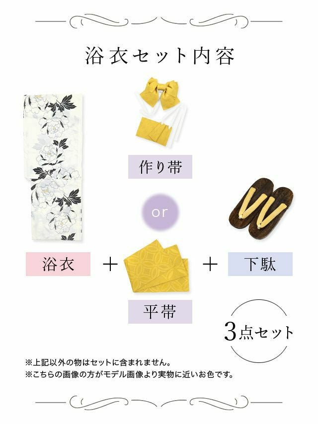 他の画像を見る ワンランク上の麗しさを演出♡ 【浴衣】白地 3色 牡丹柄 ゆかた3点SET [浴衣+平帯or作り帯+下駄] 即日発送 ¥ 22,000 税込 〜 ¥ 税込 在庫切れ 詳細を見る お気に入りに登録する