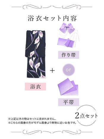3. SALE【浴衣】濃紺 菖蒲の花 パープル ゆかた2点SET [浴衣+平帯or作り帯]