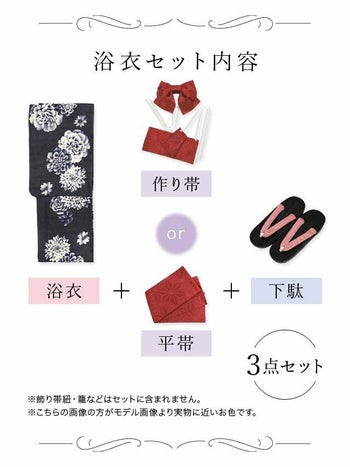 浴衣・選べる帯・下駄がついた嬉しい3点セット♪