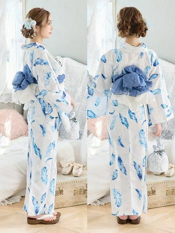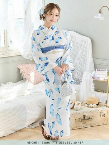 4. 【浴衣】白地 ブルーウィング ゆかた3点 [浴衣+兵児帯+下駄]