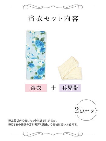 浴衣 水色地 水彩 紫陽花柄 菖蒲柄 ガーリー ゆかた3点SETのセット画像2