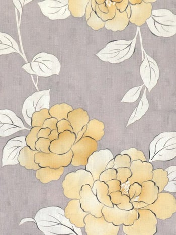 ふんわりとした甘い高級浴衣♪ 【浴衣】グレー地 黄色牡丹の花 ガーリー ゆかた3点SET [浴衣+平帯or作り帯+下駄]