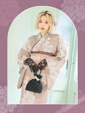 華やかなアンティークの花が舞うスウィート浴衣♡
