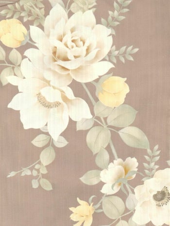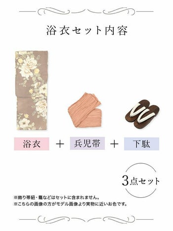 4. 【浴衣】ローズベージュ地 アンティークフワラー ゆかた3点 [浴衣+兵児帯+下駄]