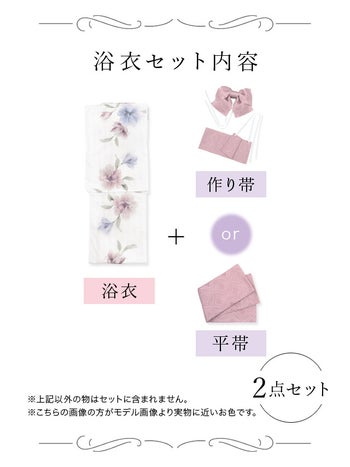 [LaLaTulle select][平帯or作り帯]花柄総レース地 浴衣3点SET (2color)