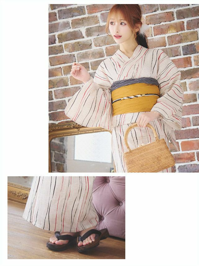 他の画像を見る 爽快感のあるレトロ浴衣♪ 【浴衣】ベージュ地 爽やかボタニカルリーフ ゆかた3点SET [浴衣+平帯or作り帯+下駄] 即日発送 ¥ 10,780 税込 〜 ¥ 税込 在庫切れ 詳細を見る お気に入りに登録する