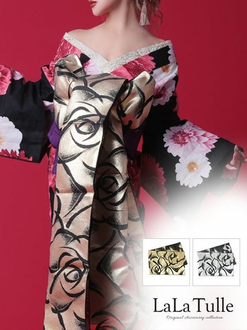 着物がゴージャスになる和風小物♪ SALE【花魁小物】ゴージャス薔薇柄水彩風デザイン兵児帯