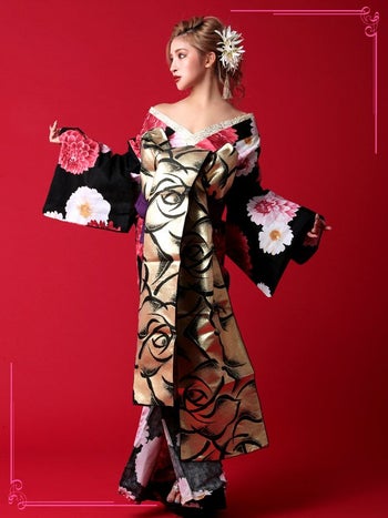 ゴージャス薔薇柄水彩風デザイン兵児帯のセット内容表
