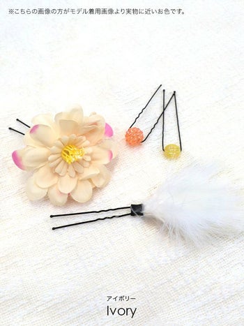 3. 【浴衣】髪飾り フェザー フラワー ヘアアクセサリー 4点セットSET(アイボリー/ピンク)