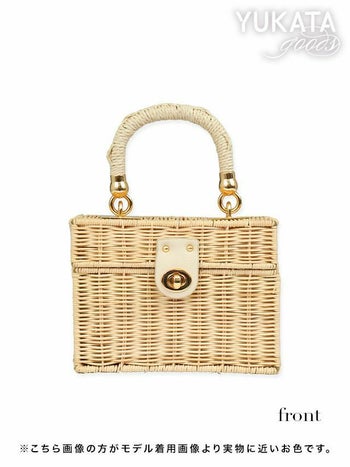 3. 【浴衣】小物 2Way スクエア型 ゴールドチェーン付き かごバッグ