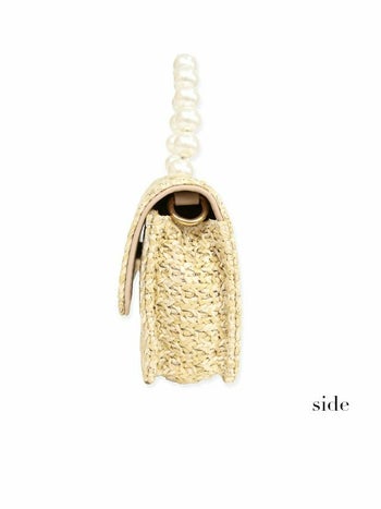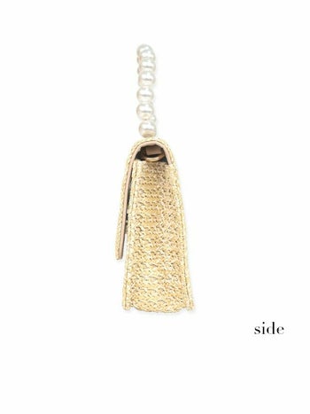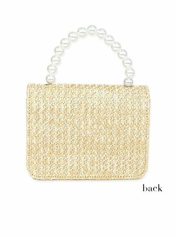 小物 2Way パールハンドル ゴールドチェーン付き かごバッグ