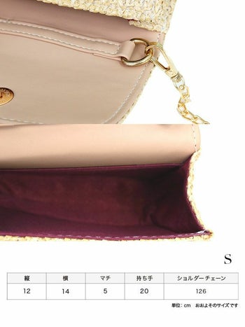 Sサイズ 小物 パールハンドル ゴールドチェーン付き かごバッグのセット内容表 Mサイズ 小物 パールハンドル ゴールドチェーン付き かごバッグのセット内容表