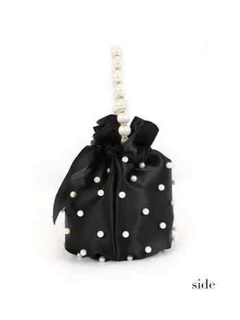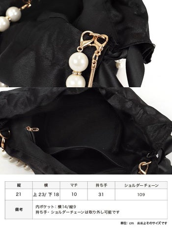 小物 2Way パール サテン生地 巾着 ショルダーチェーン付き かごバッグ