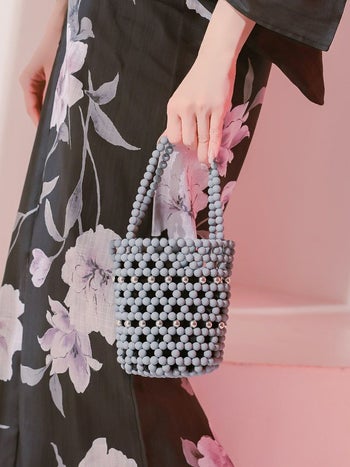 5. 【浴衣】小物 ラウンド ビーズ ミニかごバッグ