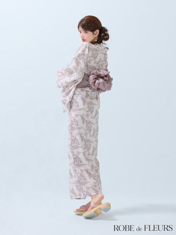 4. 【浴衣】【ROBEdeFLEURS/ローブドフルール】ガーリー フラワープリント ビジュー 選べる2点or3点SET [浴衣+兵児帯+帯紐or帯紐なし] (fm3375)