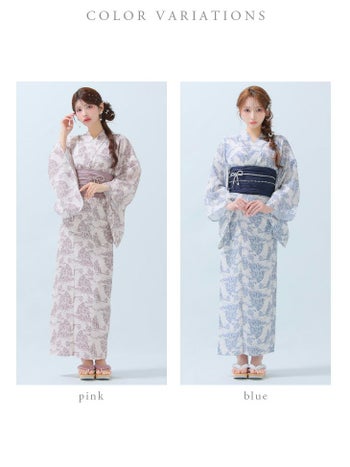 5. 【浴衣】【ROBEdeFLEURS/ローブドフルール】ガーリー フラワープリント ビジュー 選べる2点or3点SET [浴衣+兵児帯+帯紐or帯紐なし] (fm3375)