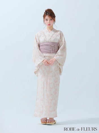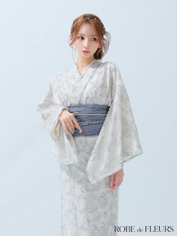4. 【浴衣】【ROBEdeFLEURS/ローブドフルール】フラワー刺繍 ビジュー ガーリー レース 選べる2点or3点SET [浴衣+兵児帯+帯紐or帯紐なし] (fm4220)