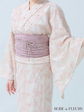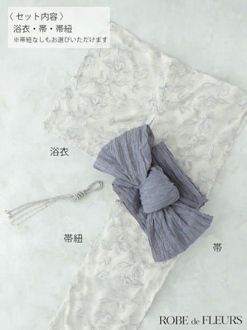 3. 【浴衣】【ROBEdeFLEURS/ローブドフルール】ビジュー ガーリー フラワー刺繍 レース 選べる2点or3点SET [浴衣+兵児帯+帯紐or帯紐なし] (fm4220)