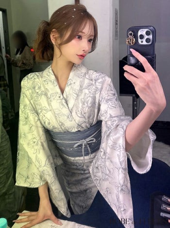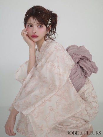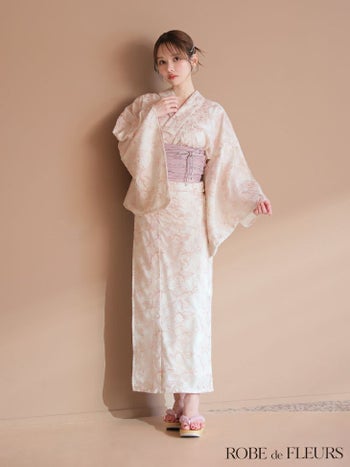 5. 【浴衣】【ROBEdeFLEURS/ローブドフルール】ビジュー ガーリー フラワー刺繍 レース 選べる2点or3点SET [浴衣+兵児帯+帯紐or帯紐なし] (fm4220)