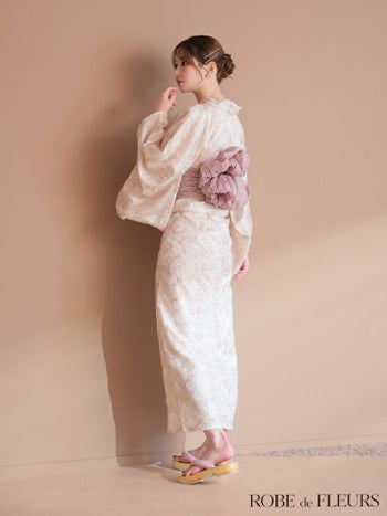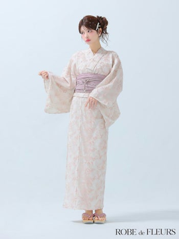 4. 【浴衣】【ROBEdeFLEURS/ローブドフルール】ビジュー ガーリー フラワー刺繍 レース 選べる2点or3点SET [浴衣+兵児帯+帯紐or帯紐なし] (fm4220)