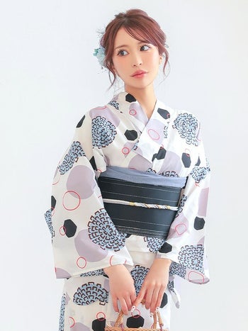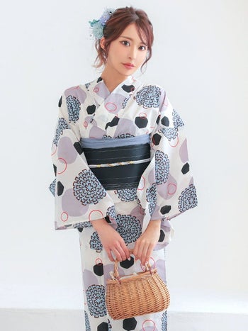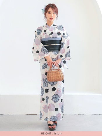 4. 【浴衣】白地 レトロ モダン 幾何学柄 個性的 ゆかた2点SET [浴衣+平帯]