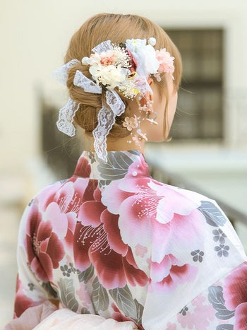 より華やかで特別感のあるスタイルに☆ 【浴衣】髪飾り くすみカラー フラワー レース リボン ヘアアクセサリー 11点セット