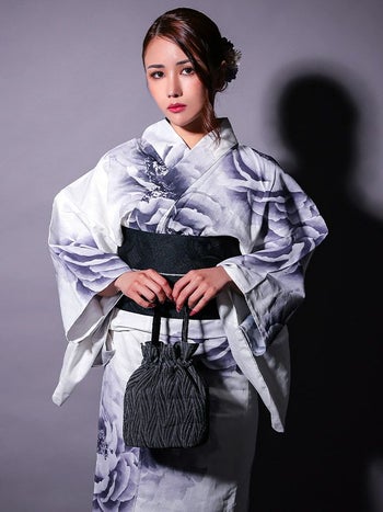 白地 粋 牡丹 ゆかた3点SETのセット画像1 白地 粋 牡丹 ゆかた3点SETのセット画像2 白地 粋 牡丹 ゆかた3点SETのセット画像2