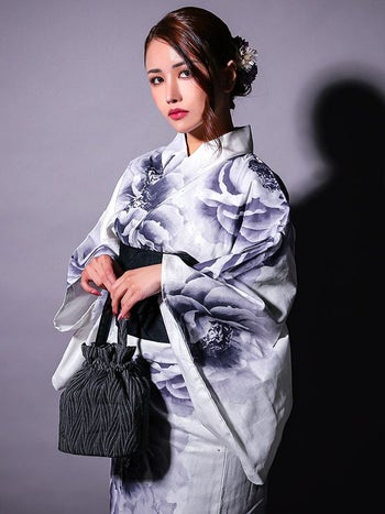 5. 【浴衣】白地 粋 牡丹 ゆかた3点SET [浴衣+平帯or作り帯+下駄]