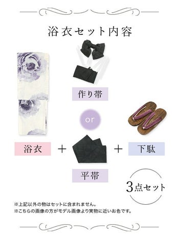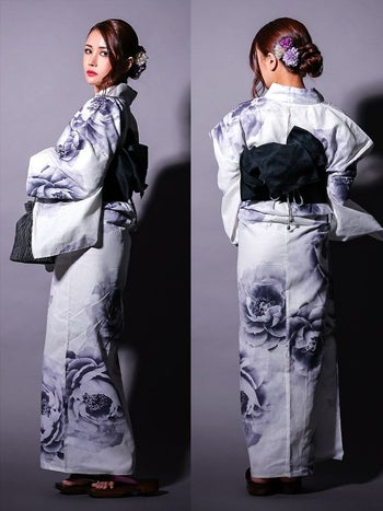 4. 【浴衣】白地 粋 牡丹 ゆかた3点SET [浴衣+平帯or作り帯+下駄]