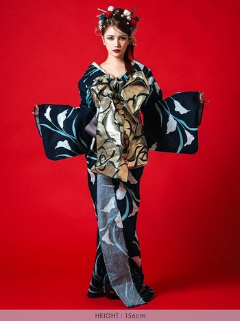 【浴衣 濃紺 菖蒲柄 2way 花魁ゆかた5点SETのサイズ表