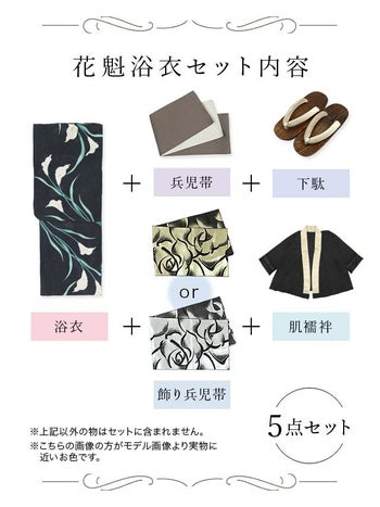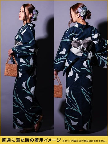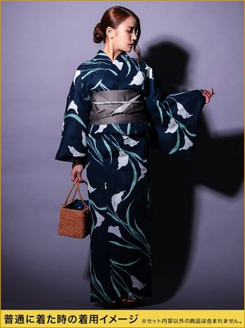 【浴衣 濃紺 菖蒲柄 2way 花魁ゆかた5点SETのセット内容表