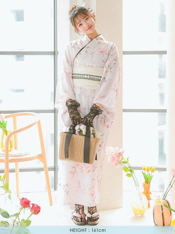 ピンク地 ニュアンス フラワー SWEET ゆかた3点SETのサイズ画像
