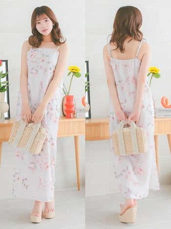 5. 【ワンピース浴衣】ピンク地 ニュアンス 花柄 ガーリー ゆかた3点SET [浴衣羽織+ワンピース+兵児帯]