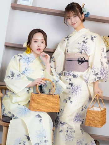 クリーム地 ブルー 水彩 菊 レトロ ゆかた3点SETのセット画像1 クリーム地 ブルー 水彩 菊 レトロ ゆかた3点SETのセット画像2 クリーム地 ブルー 水彩 菊 レトロ ゆかた3点SETのセット画像2