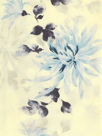 浴衣 クリーム地 ブルー 水彩 菊 レトロ ゆかた3点SET