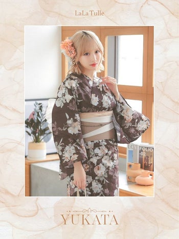 浴衣 アンティーク調 ガーリー フラワー ゆかた3点SET のイメージ画像2