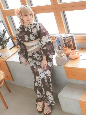 浴衣 アンティーク調 ガーリー フラワー ゆかた3点SET のイメージ画像9