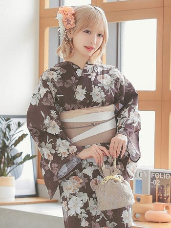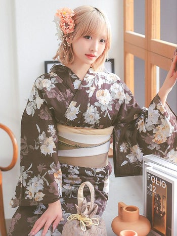 浴衣 アンティーク調 ガーリー フラワー ゆかた3点SET のイメージ画像1