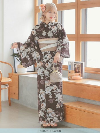 浴衣 アンティーク調 ガーリー フラワー ゆかた3点SET のサイズ表