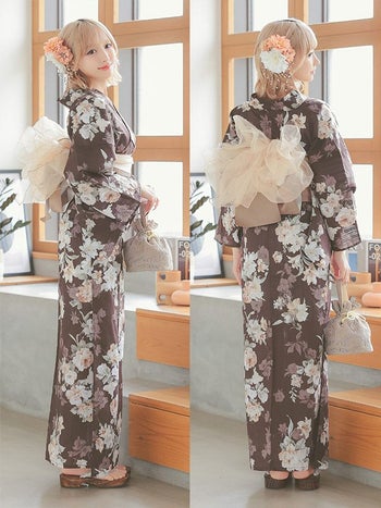 浴衣 アンティーク調 ガーリー フラワー ゆかた3点SET のセット画像1