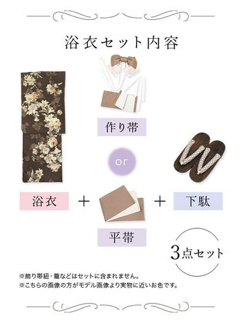 浴衣 アンティーク調 ガーリー フラワー ゆかた3点SET のセット画像3