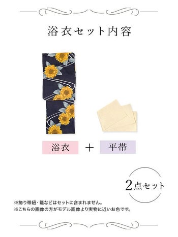 浴衣 レトロ 紺地 ひまわり 流水柄 ガーリー ゆかた2点SET のセット画像2