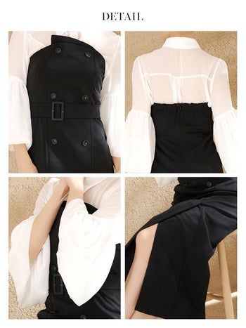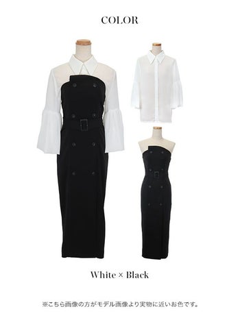 3. 【Anella/アネラ】セットアップ 袖あり 襟付き ブラウス ベアワンピース ベルトデザイン タイト 膝丈ドレス