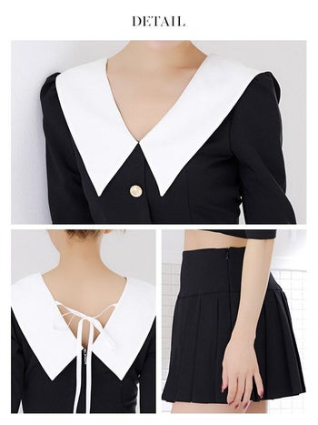 5. SALE【Anella/アネラ】袖あり ビッグカラー セットアップ プリーツスカート ガーリー フレアミニドレス