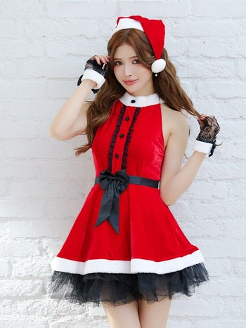 珍しいホルターネックデザインでガーリーなサンタコスチュームです♪