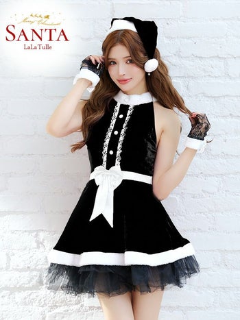 [サンタコスプレ SET]ブラックレース ホルターネック リボン フレア サンタコス[明日花キララ]