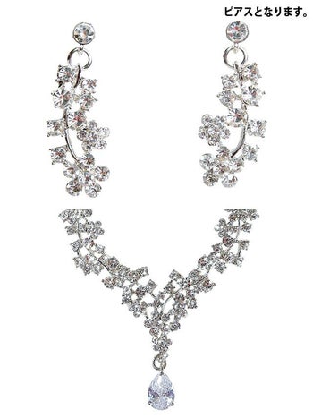 お顔周りを華やかに彩る♪ 【LaLaTulle】ゴージャス クリスタルビジュー アクセサリー2点SET (ネックレス+ピアス)