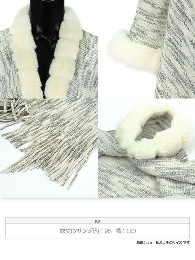 3. 【LaLaTulle】ミックス柄袖付きファーショール[ブラック][ゆんころ/羽織り着用]